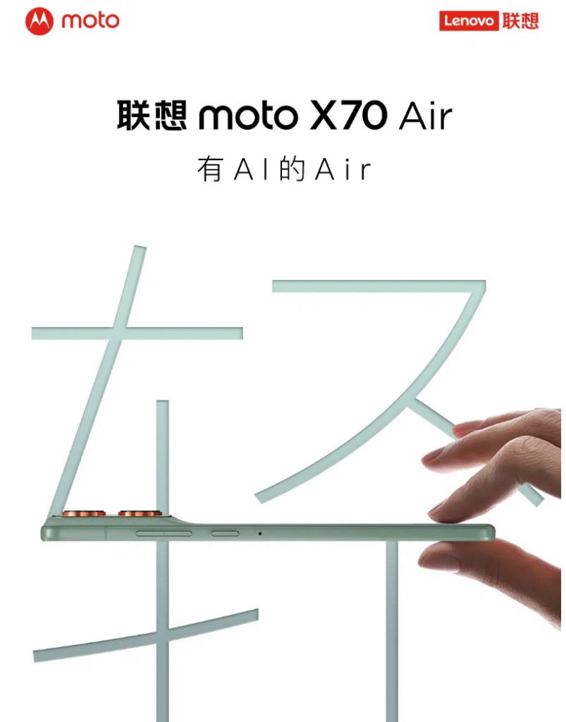 Motorola already gave a sneak peek of the Edge 70 on its Weibo account with a promo image. The photo shows a side view of the phone in mint/sage green, highlighting its slim shape, visible buttons, and camera modules. There are orange accents around the cameras and the Moto AI button, which adds a fun pop of color.