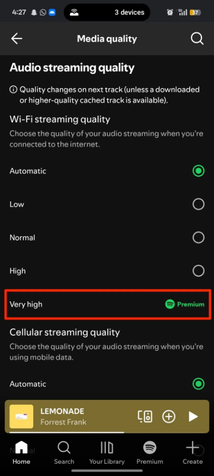 The rollout is already underway in select regions, including the US, UK, Germany, Japan, and Australia. Over 50 markets are expected to gain access by October—so here’s hoping your country makes the list.If you’re a Premium user, you may already see the new option under Settings & Privacy > Audio Quality. Select “Very High” for WiFi streaming to enable lossless playback. Note: you’ll need to turn it on individually for each device, even under the same account.